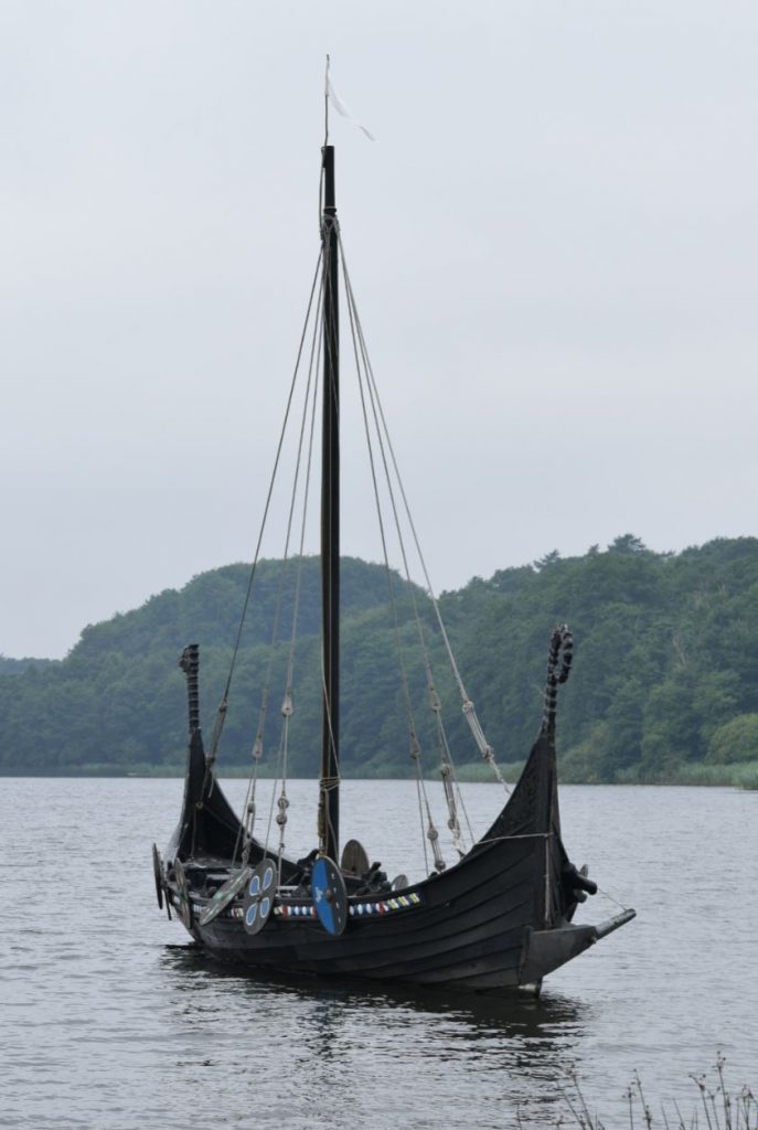 Vandaag vertrekken we naar Hillerød dat op het eiland Sjælland is gevestigd. Gisteravond hebben we de luifel al ingepakt zodat deze droog de zak in kon. En dat was maar goed ook want vannacht was het weer mistig. We bedenken ons dat we eigenlijk geen foto’s van het meer, het Vikingsschip en de camping hebben gemaakt (foto 1, 2 + 3). Dus dat doen we nadat we betaald hebben en de camping afrijden naar de parkeerplaats die naast het meer is.