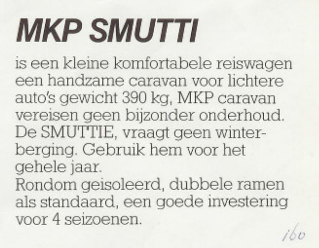 Om 11:00u doen we even een stop bij een parkeerhaventje, ik kook even wat water in de caravan om aanmaakkoffie te maken. Er parkeert een auto met caravan (foto 1) genaamd Smutti achter ons. En wij maar denken dat we een kleine caravan hebben. Deze was nog kleiner en had ook een deur aan de achterkant (foto 2). Even via de site van mkpcaravan.nl een stukje tekst over de Smuttie (foto 3).