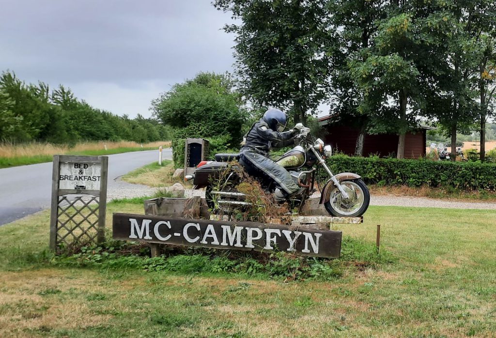 Gisteren hebben we het adres van Midtfyns Camping in Ringe genoteerd, maar het adres is niet te vinden. Dan zien we wel een bordje met een tent erop. Dus die weg volgen we. We komen bij een MC Campfyn uit (foto 7 + 8). Het blijkt een camping voor motorrijders te zijn en een B&B. De eigenaresse vermeld dat ze geen stroom heeft en eigenlijk geen caravans toelaat. Maar als we zeggen dat onze caravan heel klein is en dat we geen stroom nodig hebben komt ze even kijken. We mogen blijven en dat doen we voor 2 nachten (400 DK). Het hele tentenveld is leeg, dus we zoeken een mooi plekje uit (foto 9). We stappen op de fiets om in het dorp boodschappen te doen. Er is een Netto, geen fijne winkel want alles staat door elkaar en er zijn weinig producten voor ons aanwezig. Als we buitenkomen regent het, dus regenjas aan en snel terug naar de caravan. ‘s Avonds doen we spelletjes en dan is het tijd om te slapen.