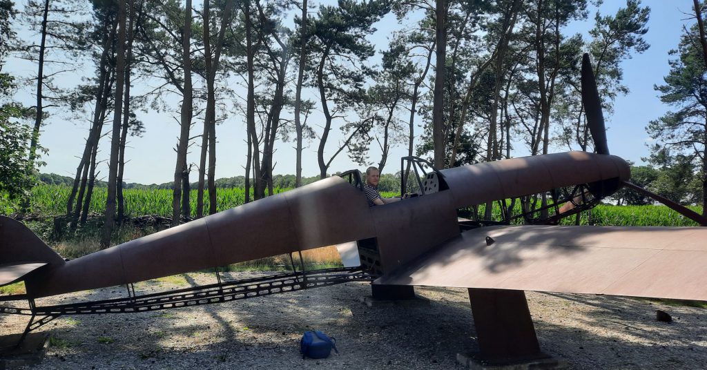 Vandaag rijde we naar Schijnvliegveld de Kiek, dat 10 minuten rijden is van de camping. Hier herbeleef je de geschiedenis, net na het begin van de Tweede Wereldoorlog realiseren de Duitsers Scheinflughafen Kamerun (SF37). In de omgeving beter bekend als ‘De Kiek’. Door schijnvliegvelden in te richten, wilden de Duitsers vijandelijke vliegers verleiden om daar hun bommen op te droppen, in plaats van op het werkelijke doel. Het was de bedoeling dat de geallieerde piloten De Kiek aanzagen voor het echte vliegveld Gilze-Rijen.