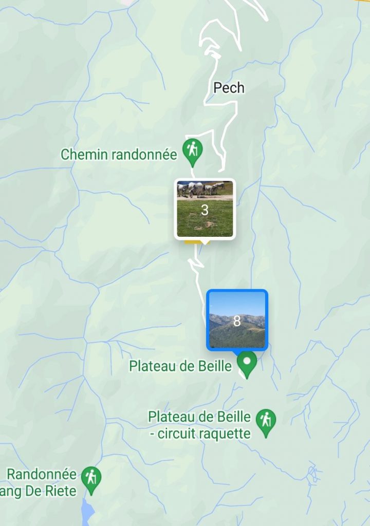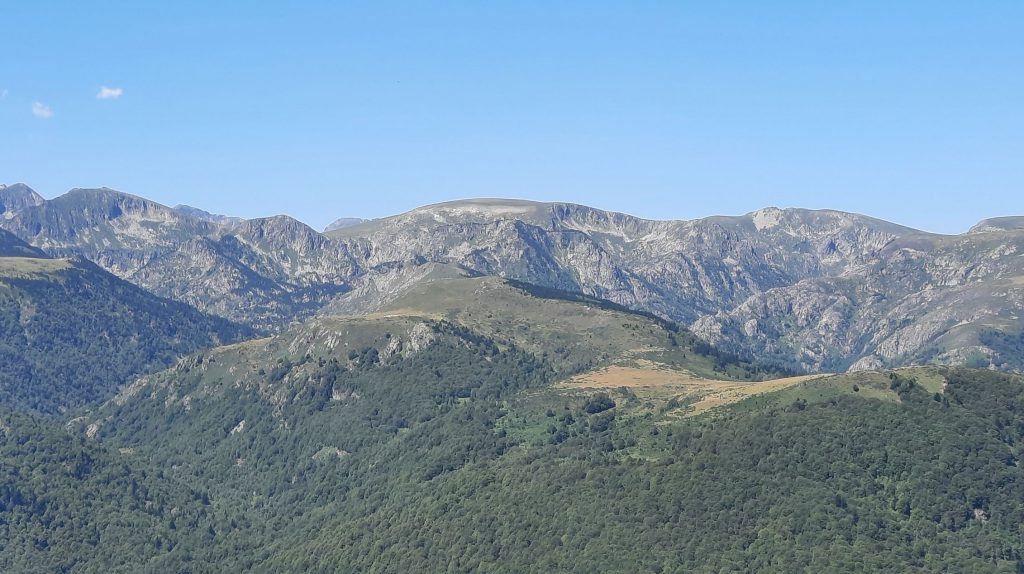 Vandaag willen we wandelen in de echte bergen van de Pyreneeën, dus wandelschoenen aan en stokken mee. We zien in de atlas, vlak bij het plaatsje Pech een pictogram met een uitkijk, Plateau de Beille. We klimmen met de auto naar 1785 meter hoog. Bovenaan een groot parkeerplaats met voorheen een groot hotel/ restaurant (2022 opgeleverd), maar door brand verwoest. Nu zijn ze het aan het slopen. We maken een wandeling op de berg. Zeker nog een keer de moeite waard om de rest van het berggebied te bewandelen.