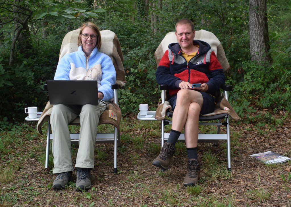 Brak word ik wakker, met hoofdpijn. Dus een rustige start op de camping. De blog uittypen op de pc, ontbijten, koffie, lunch, lezen. Han is ondertussen bezig om te kijken hoe er een selfie gemaakt kan worden van ons beide op afstand met zijn afstandsbediening van de camera.