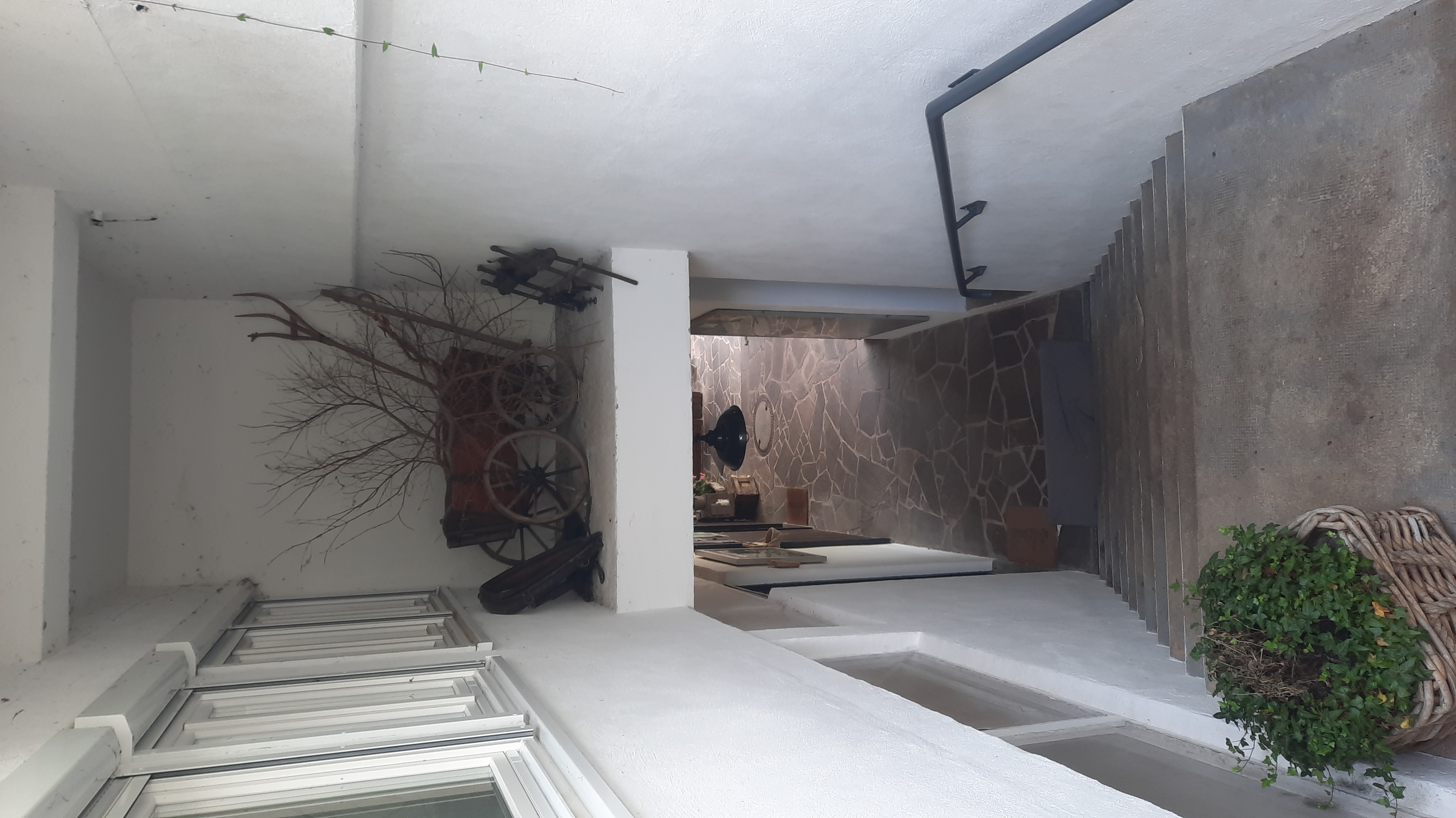 Het huis van de eigenaar staat beneden. Tussen het huis en de garage gaat een trap omhoog en aan beide kanten zijn vertrekken. Een heren en een dames wasgelegenheid, een drooghok en een stuk hoger een ruimte waar je kan afwassen, handwas en waar folders liggen van de omgeving.