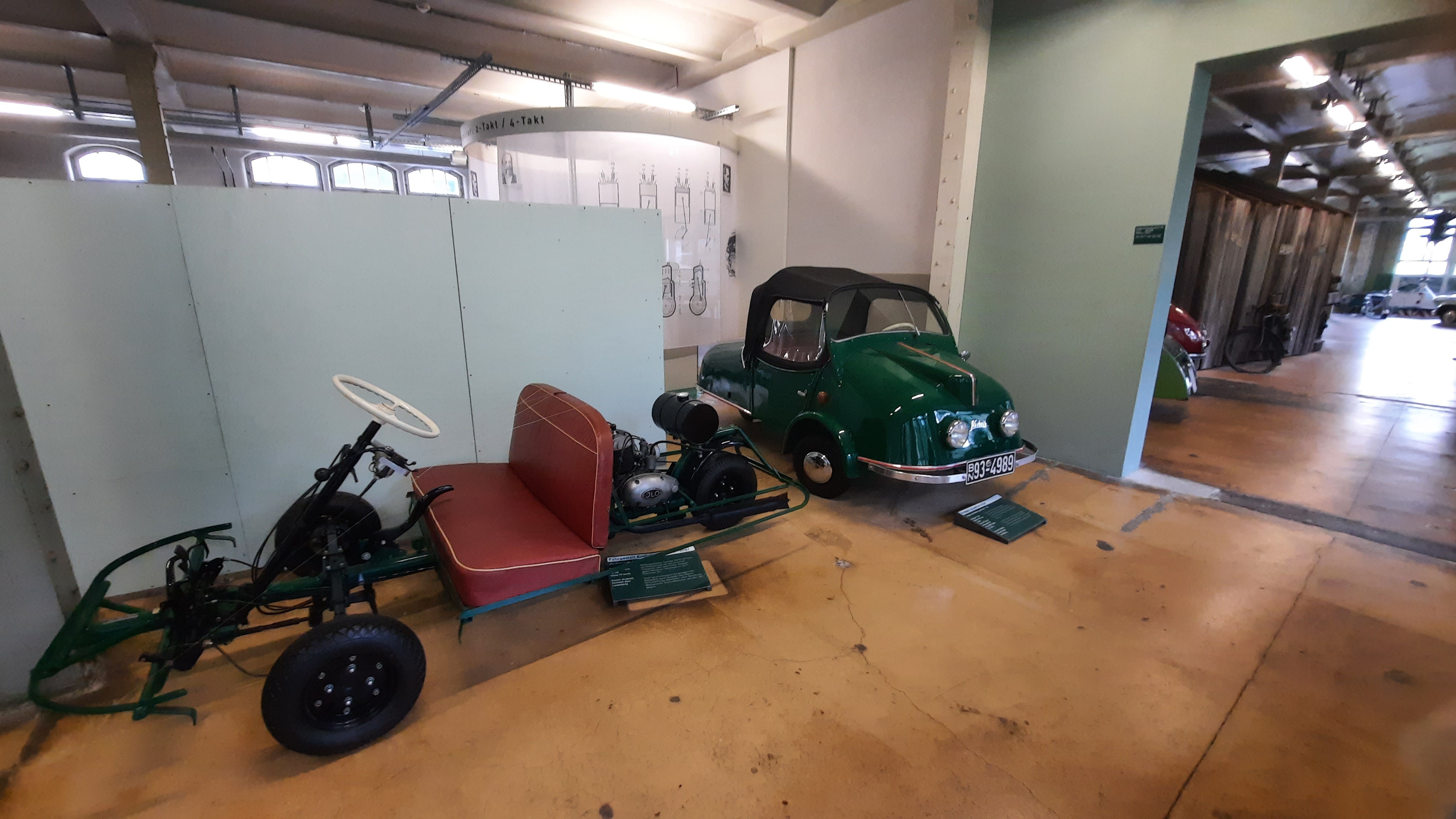 Via steile weggetjes en over de bergkam komen we bij het museum aan waar we voor de deur kunnen parkeren. We gaan voor alle vier de panden. In het eerste pand (in het voormalige fabrieksgebouw van de firma Junghans) is het museum gehuisvest. Op de bovenste 4de verdieping krijg je een overzicht over het ontstaan en de productie van uurwerken, waaronder ook de introductie van de lopende band techniek. Dan loop je iedere keer een etage lager. Hier vind je een fraaie collectie van overwegend Duitse motoren en auto’s, maar ook het alledaagse leven in de vijftiger en zestiger jaren.