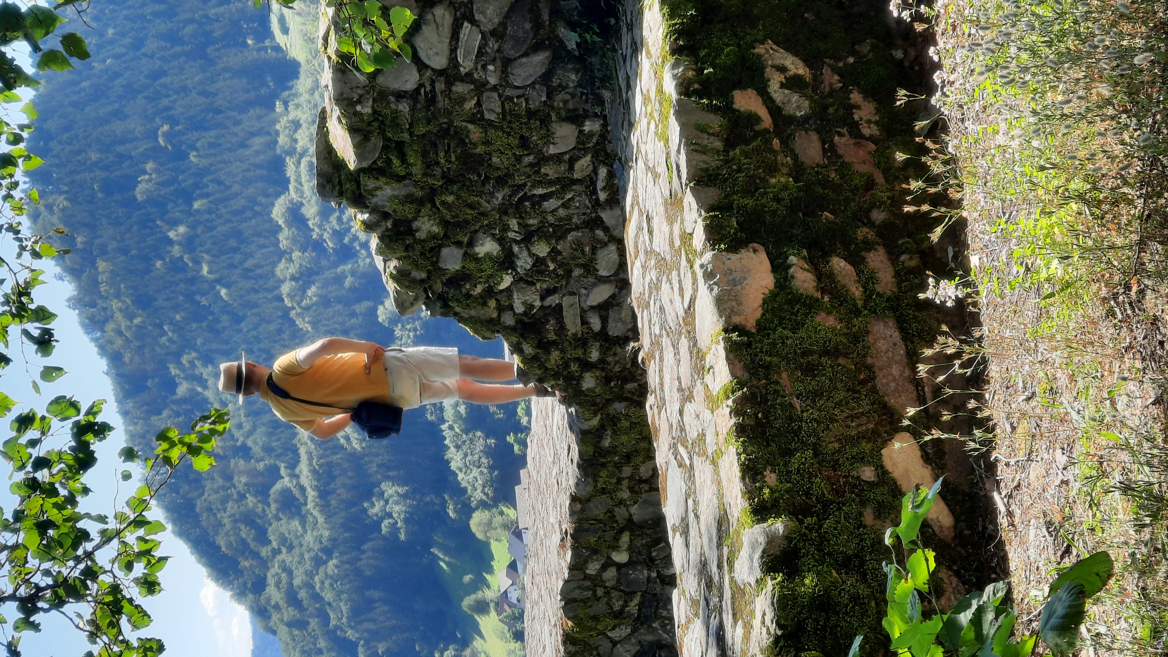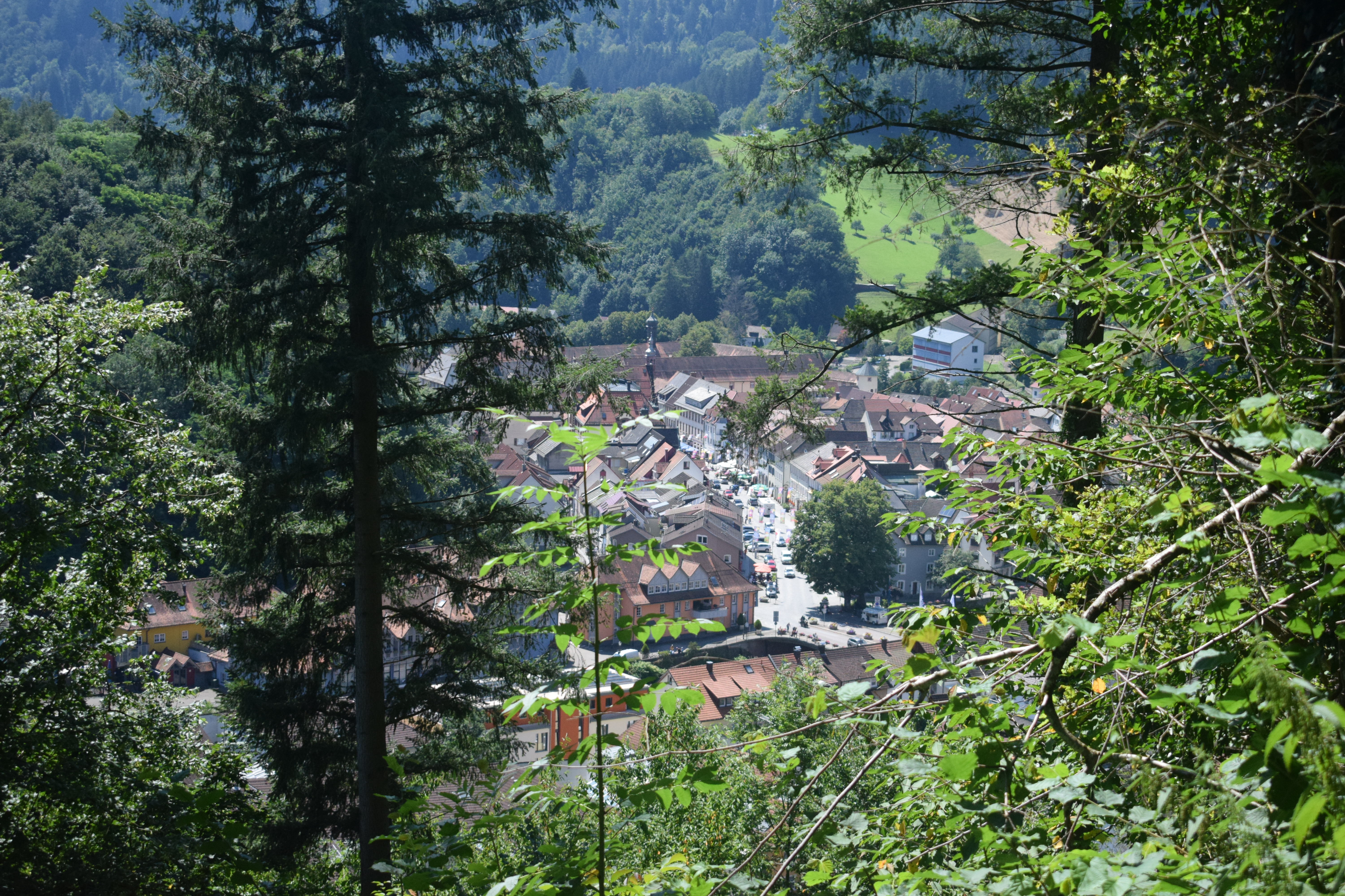 Het doel van deze route is de ruïne (slot). Vlak bij de ruïne staan schapen en geiten. De route na het slot is smal en stijl, gaat door een dorpje. En daarna gelukkig weer door het bos. Het laatste stuk is weer een pad heel stijl om laag maar wel heel leuk. We komen aan de achterkant van het stadje Wolfach binnen. Bij de start van de wandeling zagen we een ijscowagen op de brug staan en gelukkig staat hij er nog. Dus we trakteren ons op twee bolletjes ijs naar smaak.