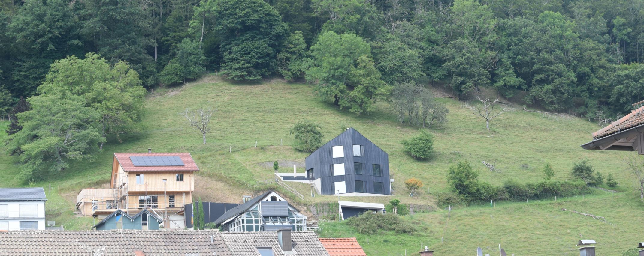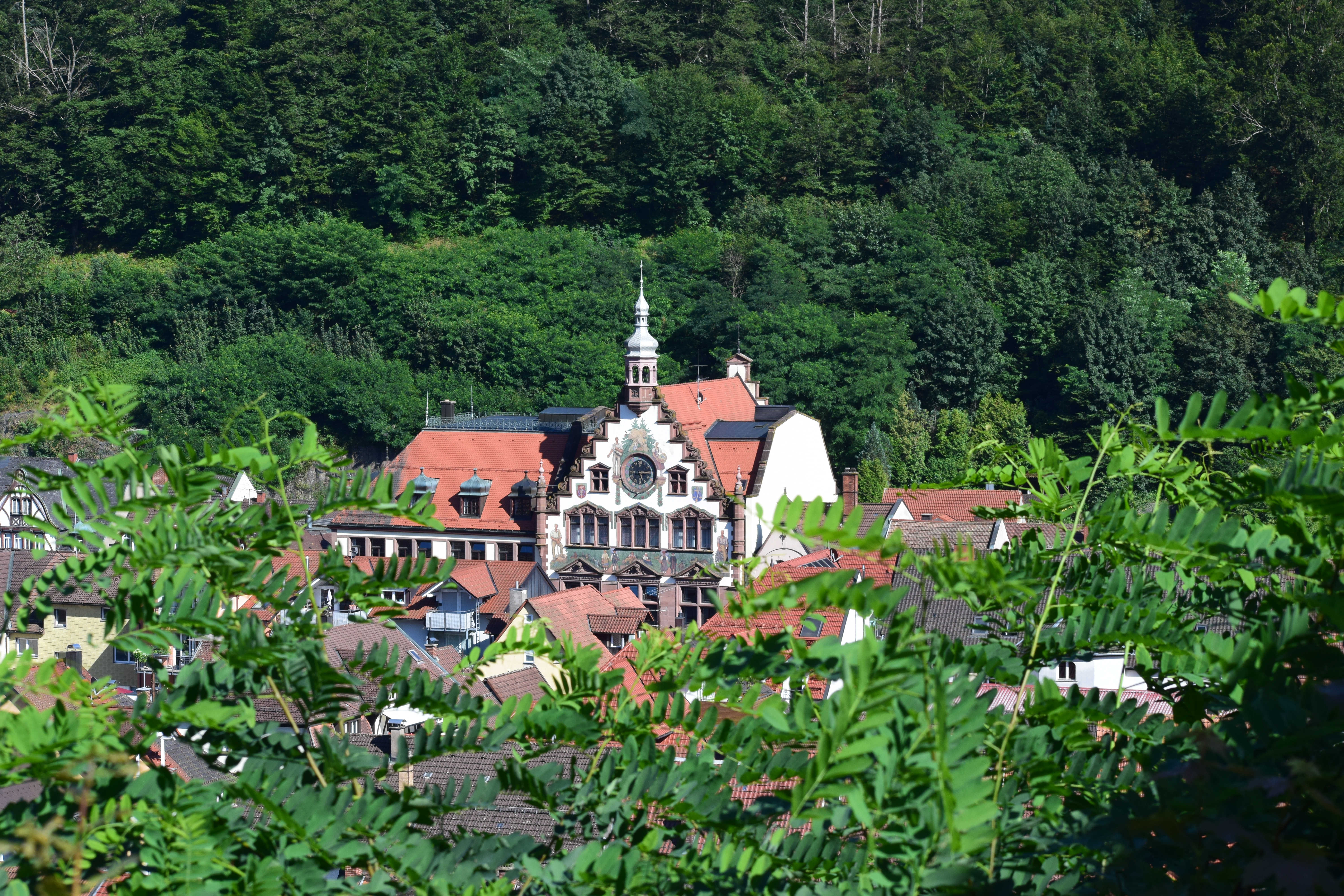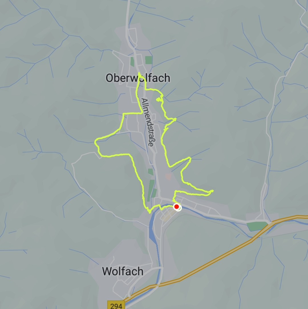 Vandaag gaan we een wandeling maken in en rondom Wolfach. We starten bij de brug in Wolfach en lopen tussen de huizen met de weg stijl omhoog. Zo lopen we ook langs het moderne huis dat je al ziet vanaf de start.