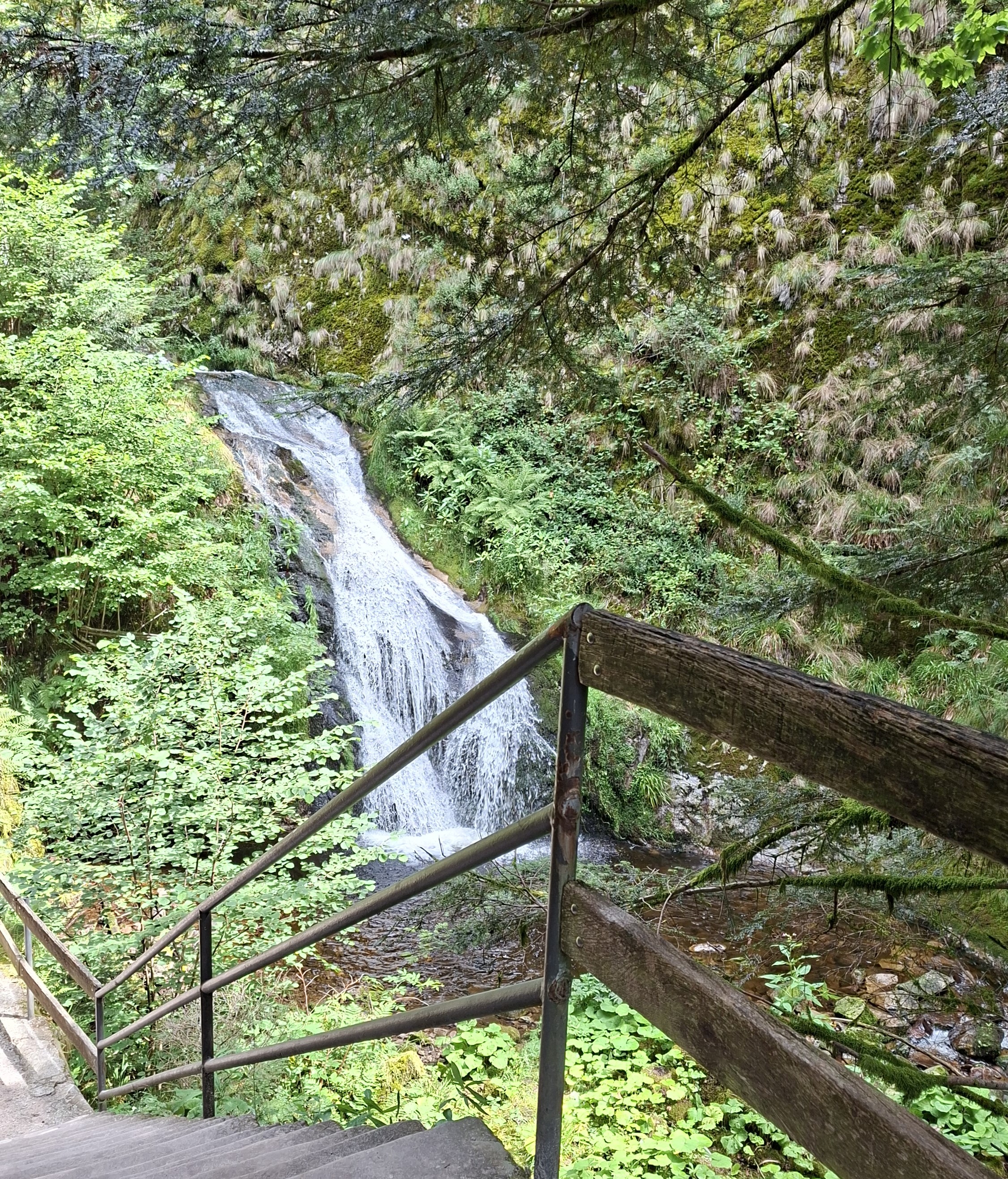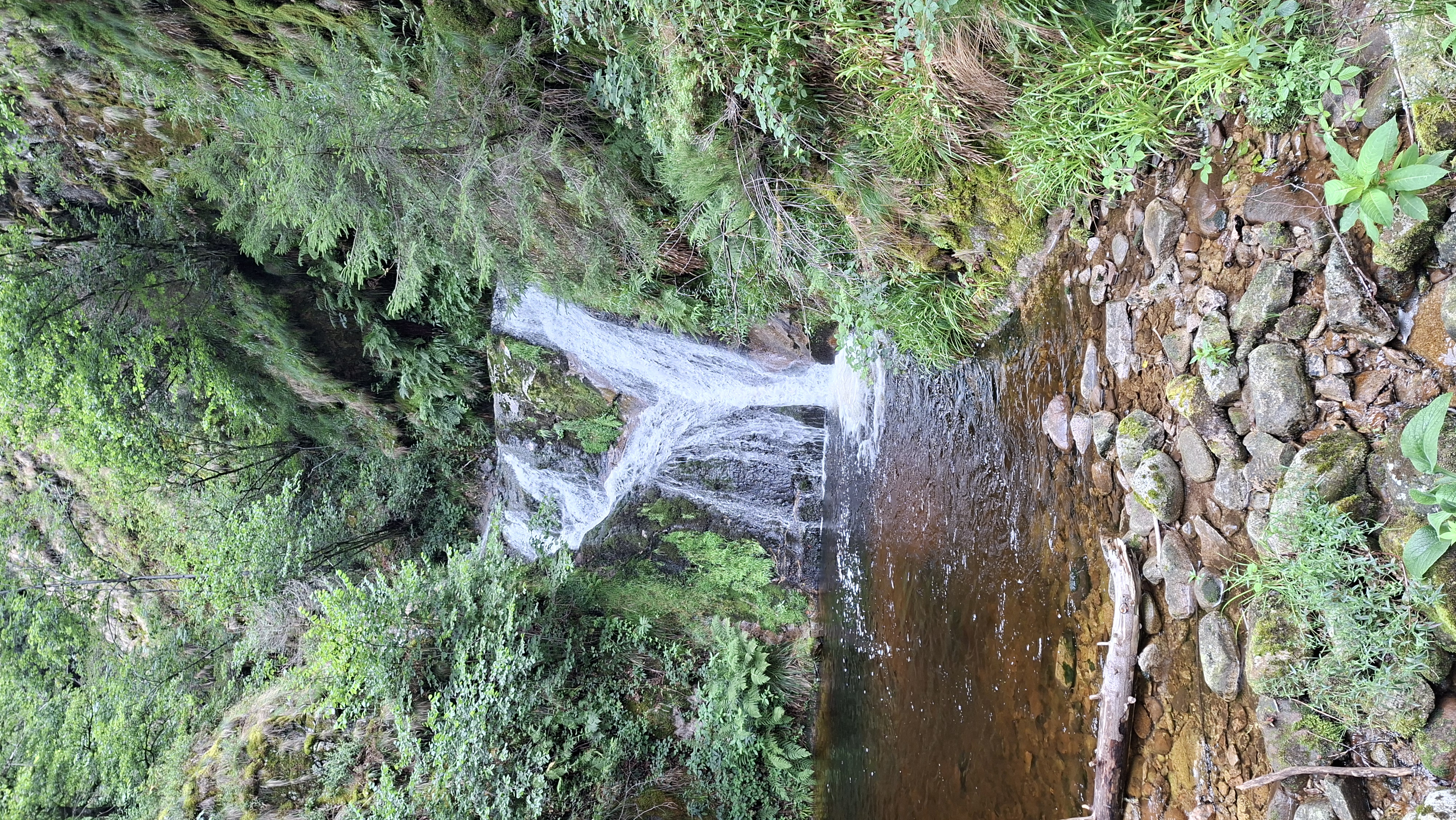 Wij lopen de route van het zien van een waterval naar het zien van een beekje. Maar de foto’s staan dus van begin tot aan onderaan van de waterval. De andere foto’s zijn van de ruïne van het oude klooster, die we bovenaan de route vinden.