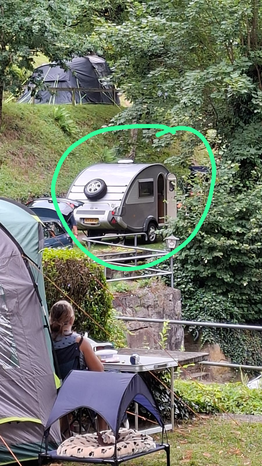 Dan terug naar de camping, we krijgen een foto door waar ze rijden en dan zijn ze rond half 5 bij ons. Han wacht hen op onderaan de camping. Ze krijgen het plekje boven aan links toegewezen.